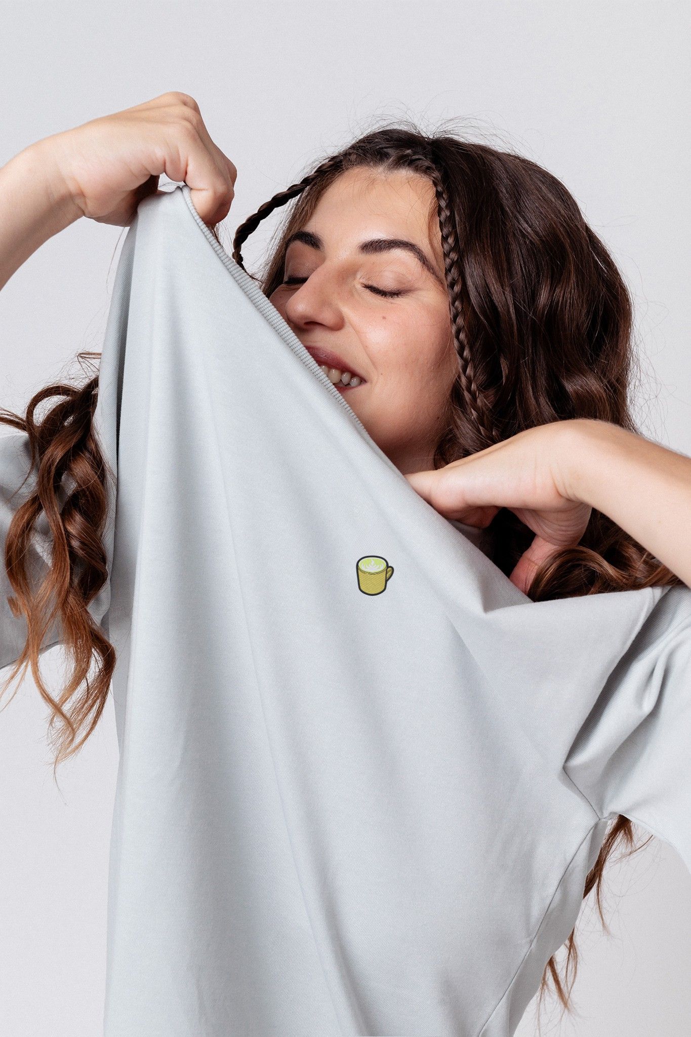Heavy Oversized Bio Baumwoll T-Shirt mit extra schwerem Stoff (230gsm) und gesticktem Matcha Latte Design