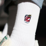 Die Stickerei auf unseren Fashion Drinks Socken bleibt auch nach mehrmaligem Waschen in einwandfreier Form. Wir verwenden präzise Industriemaschinen, die speziell für feine, detaillierte Stickarbeiten entwickelt wurden. So bleibt die Stickerei stabil und die Socken behalten ihre Form. Um die Qualität zu erhalten, empfehlen wir, die Socken bei niedrigen Temperaturen zu waschen und sie auf links zu drehen.