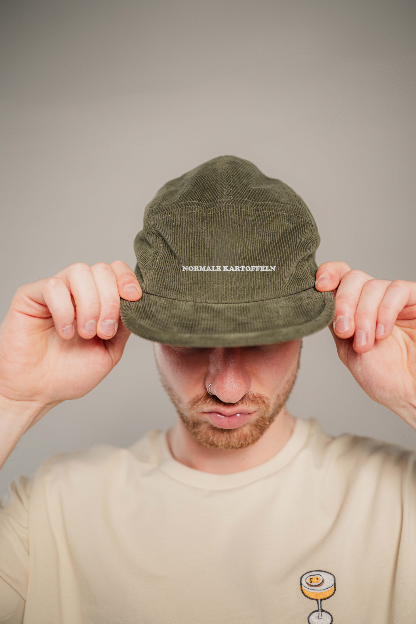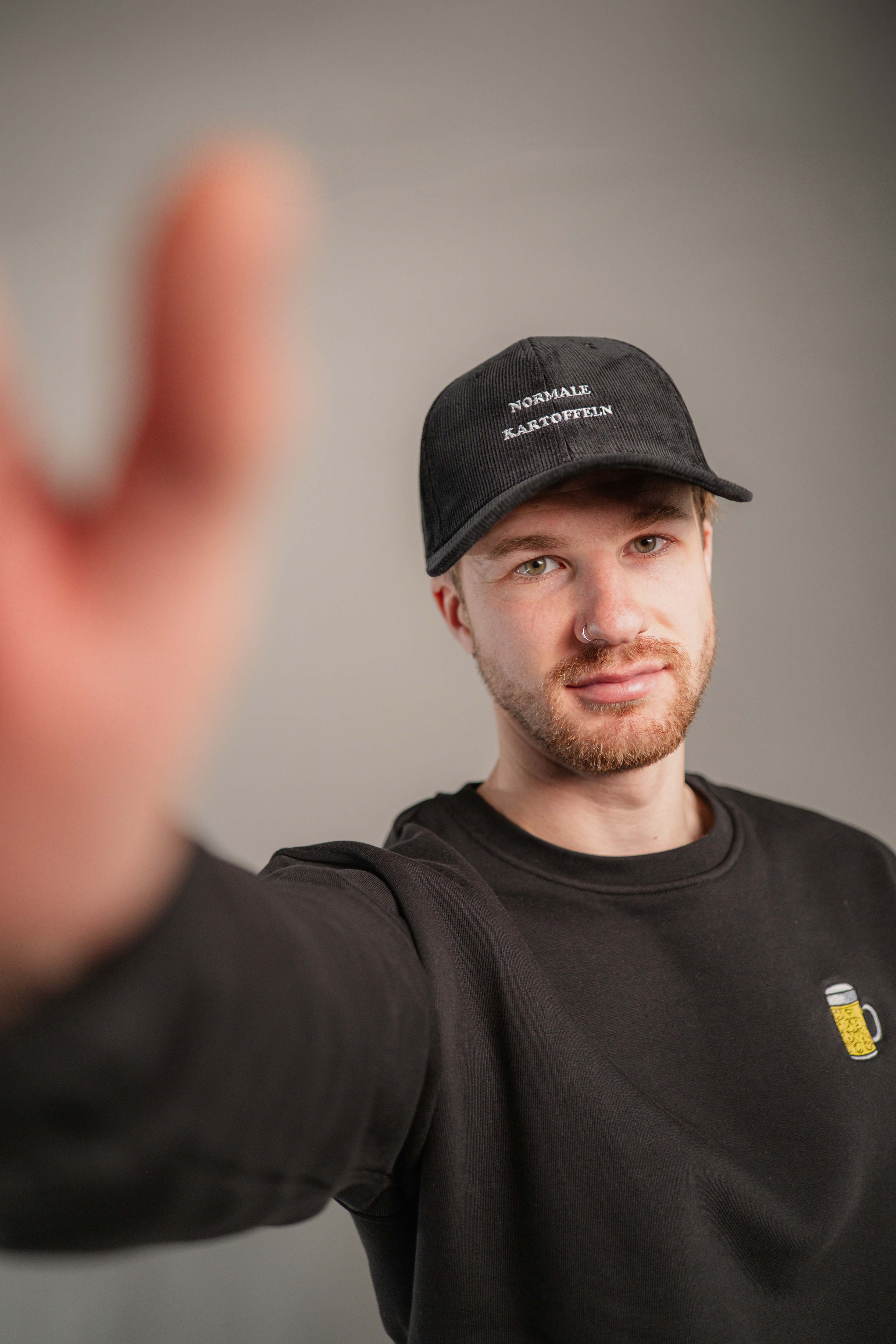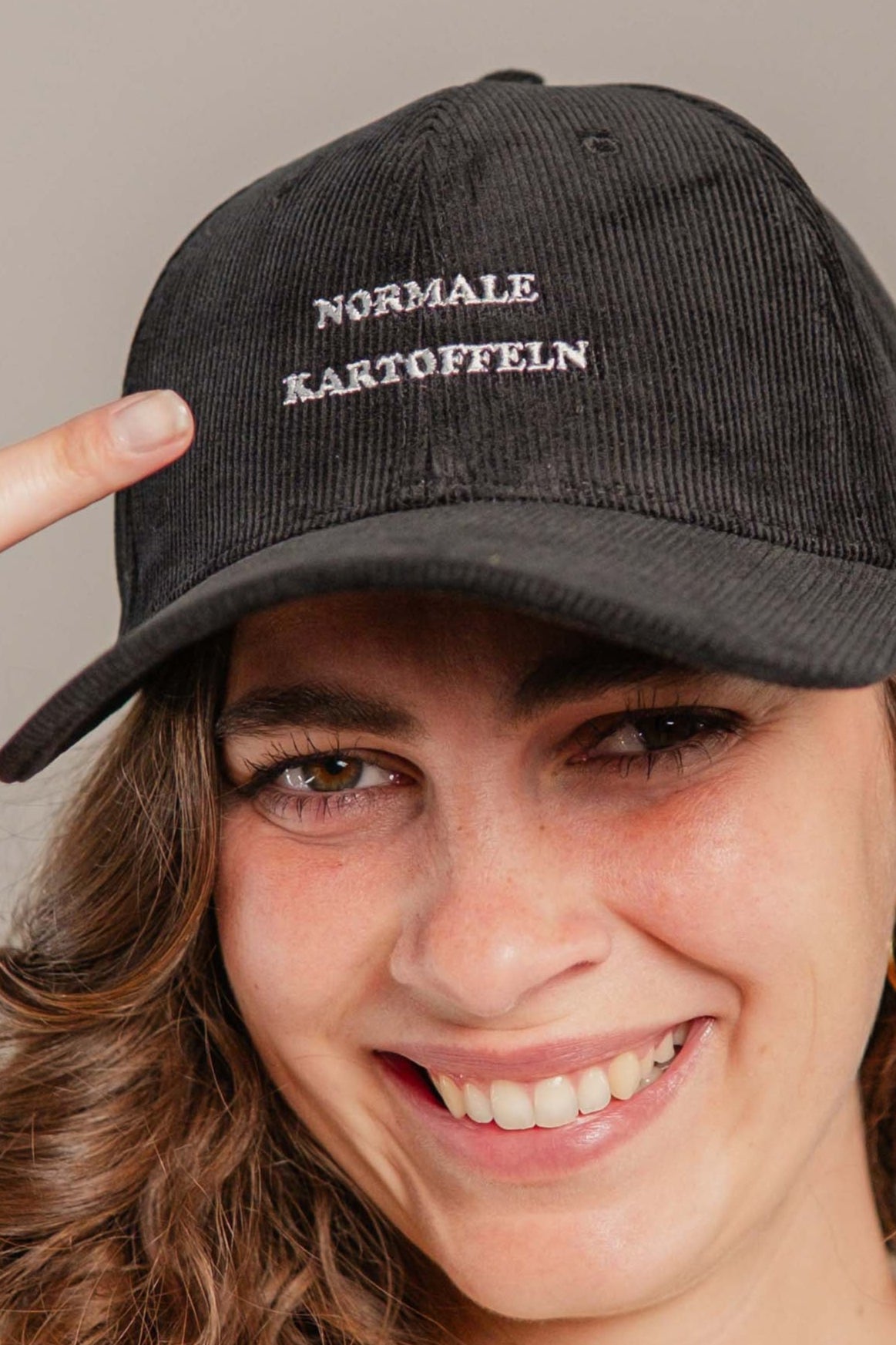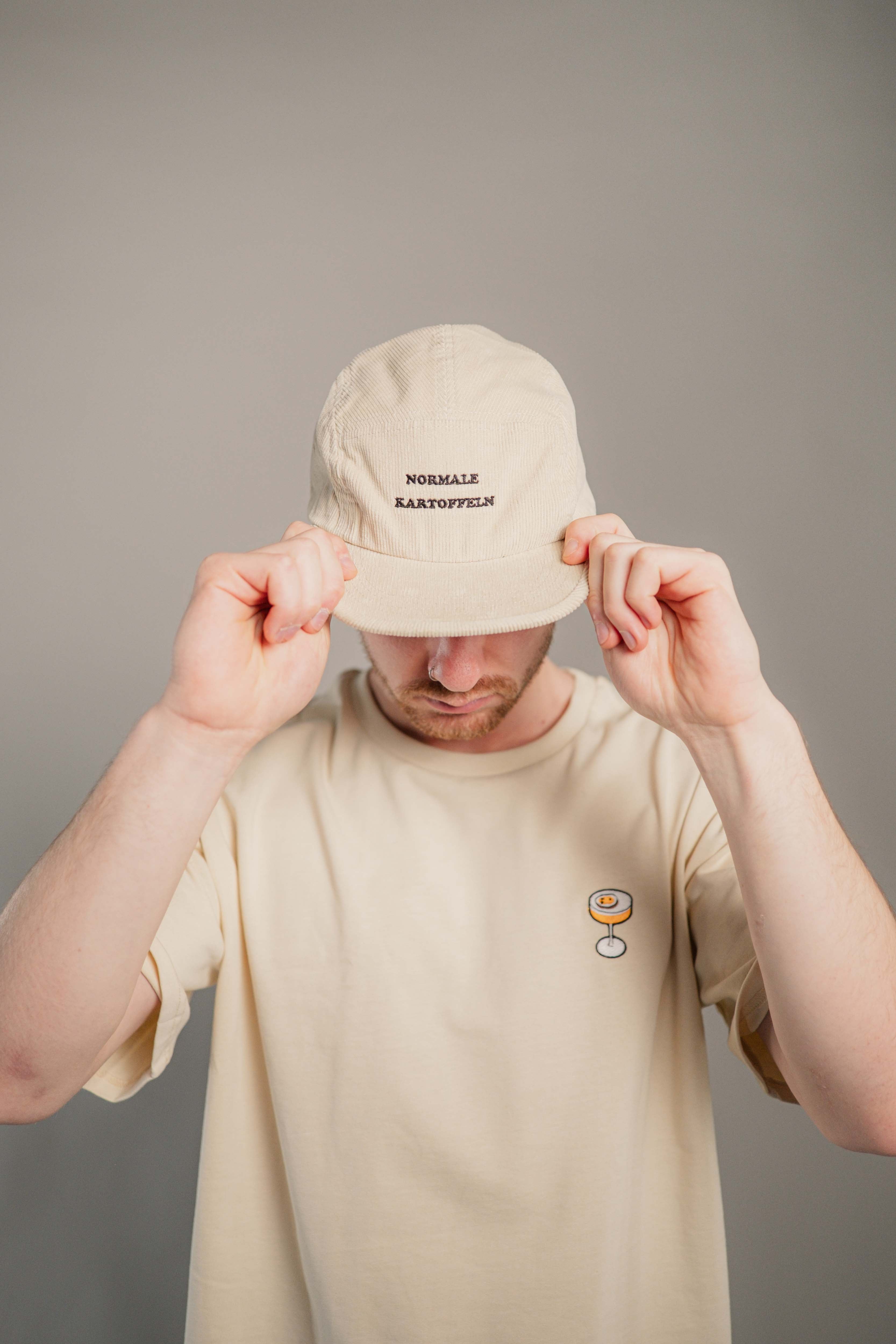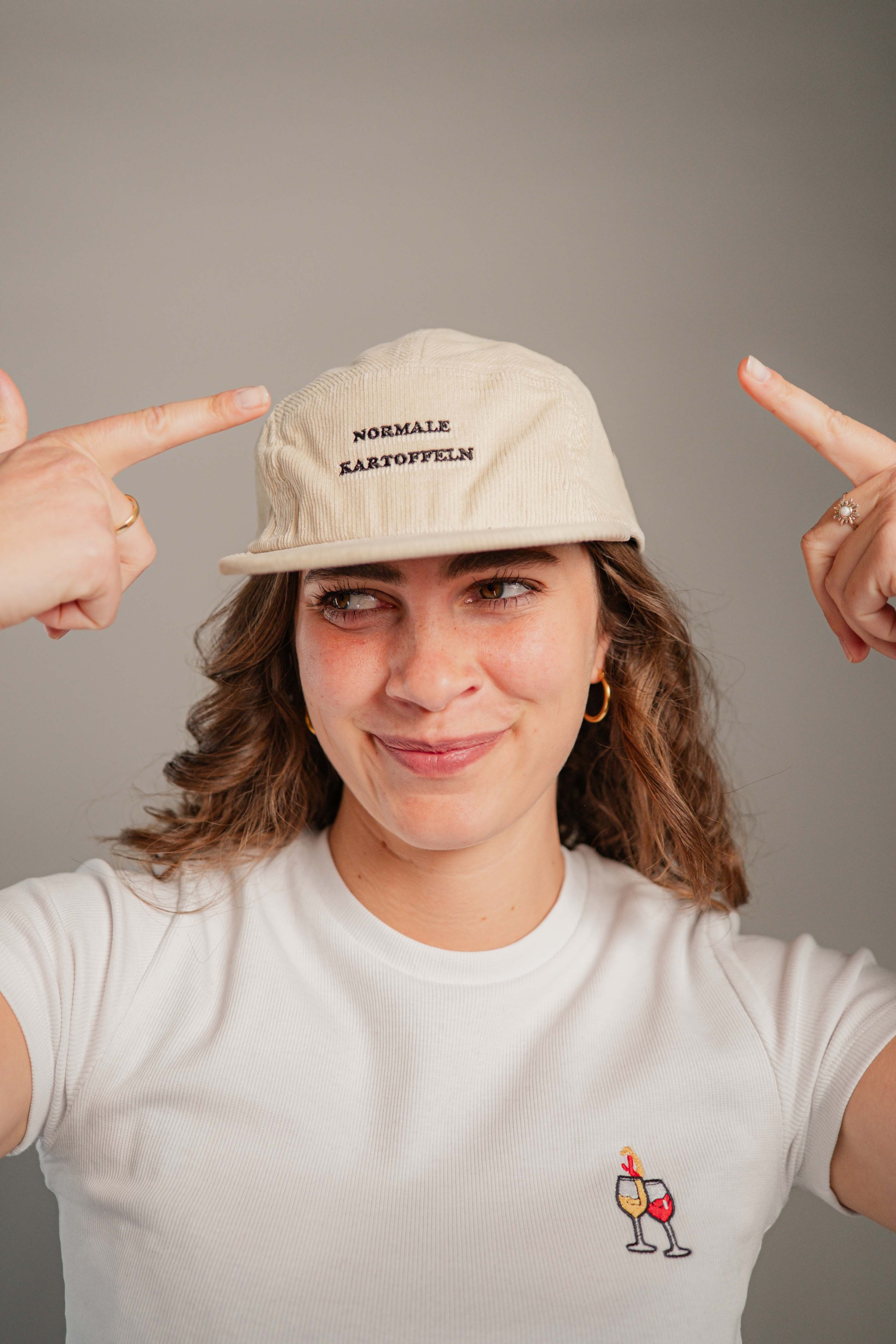Super hochwertige Cord Cap aus 100% Bio Baumwolle mit gestickten "Normale Kartoffel" Schriftzug vorne und kleinen gestickten  #1 seitlich
