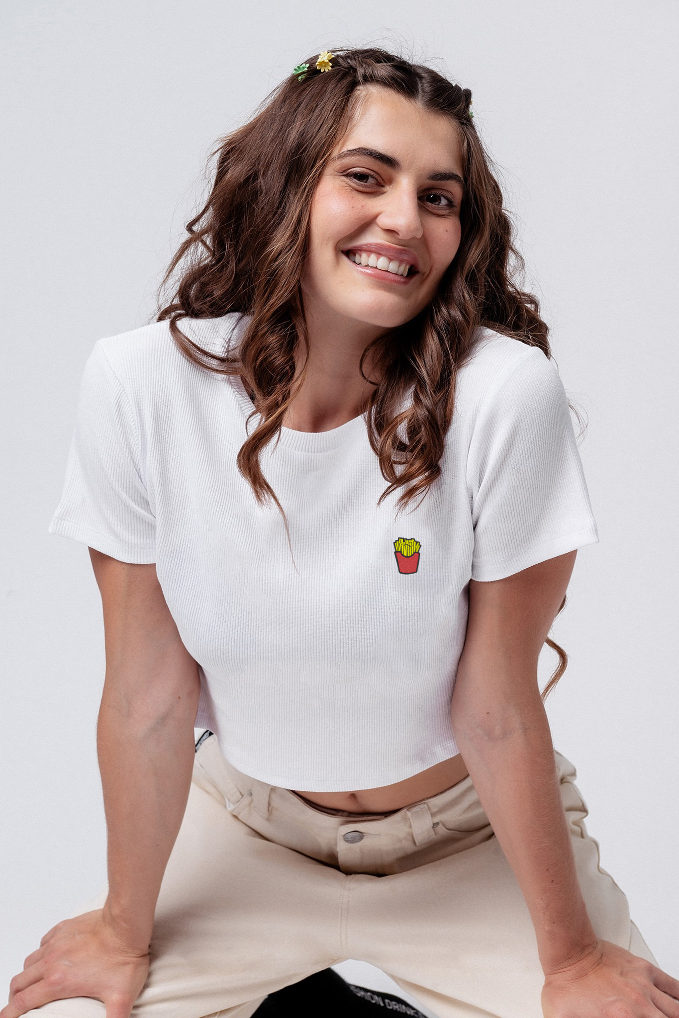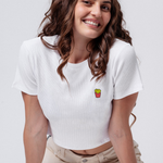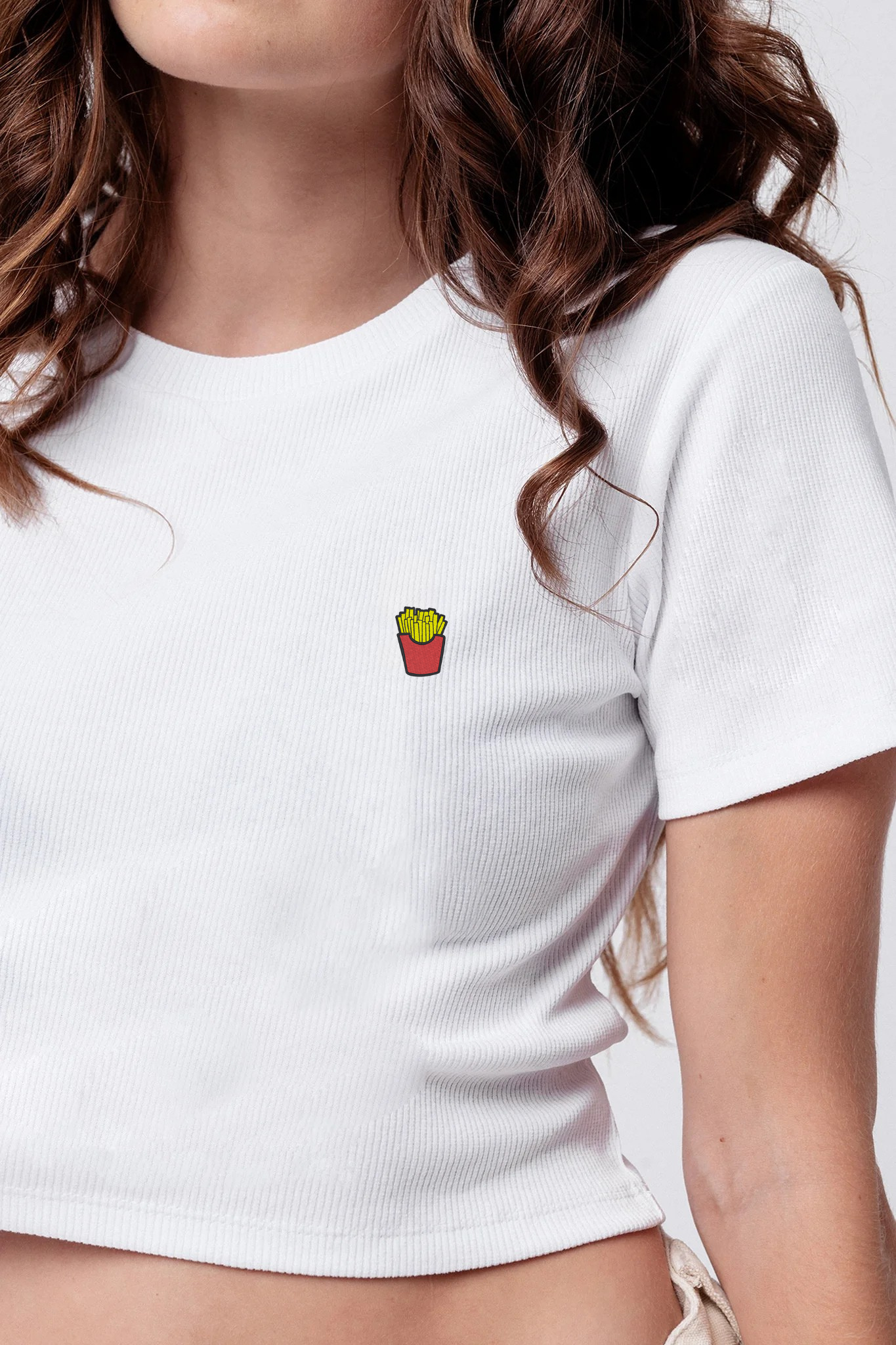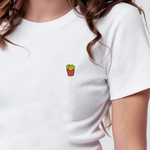 Super hochwertiges Bio Baumwoll Cropped T-Shirt mit gesticktem Pommes Design in drei verschiedenen Schnitt-Varianten: Ripped, Regular & Oversized