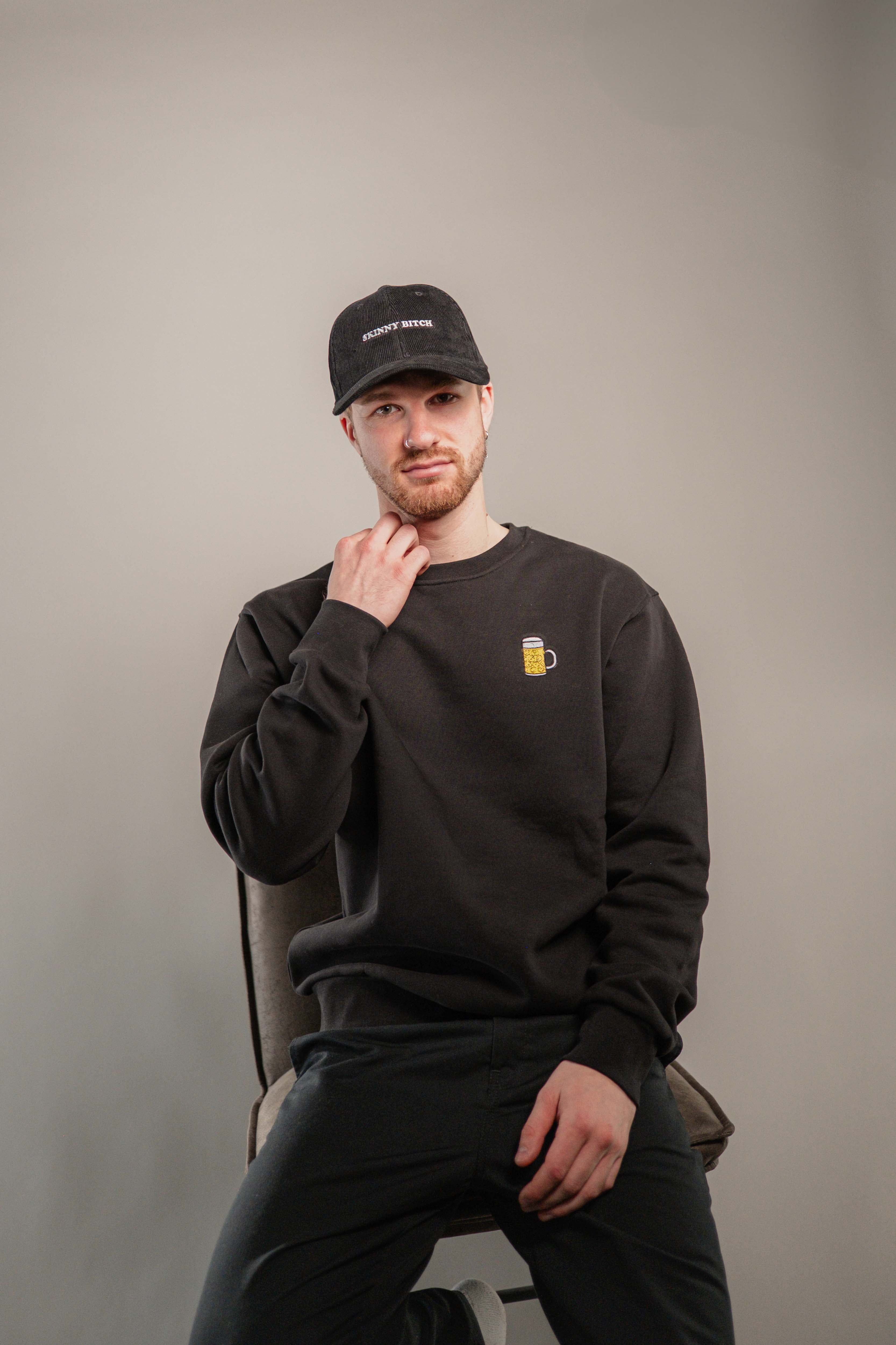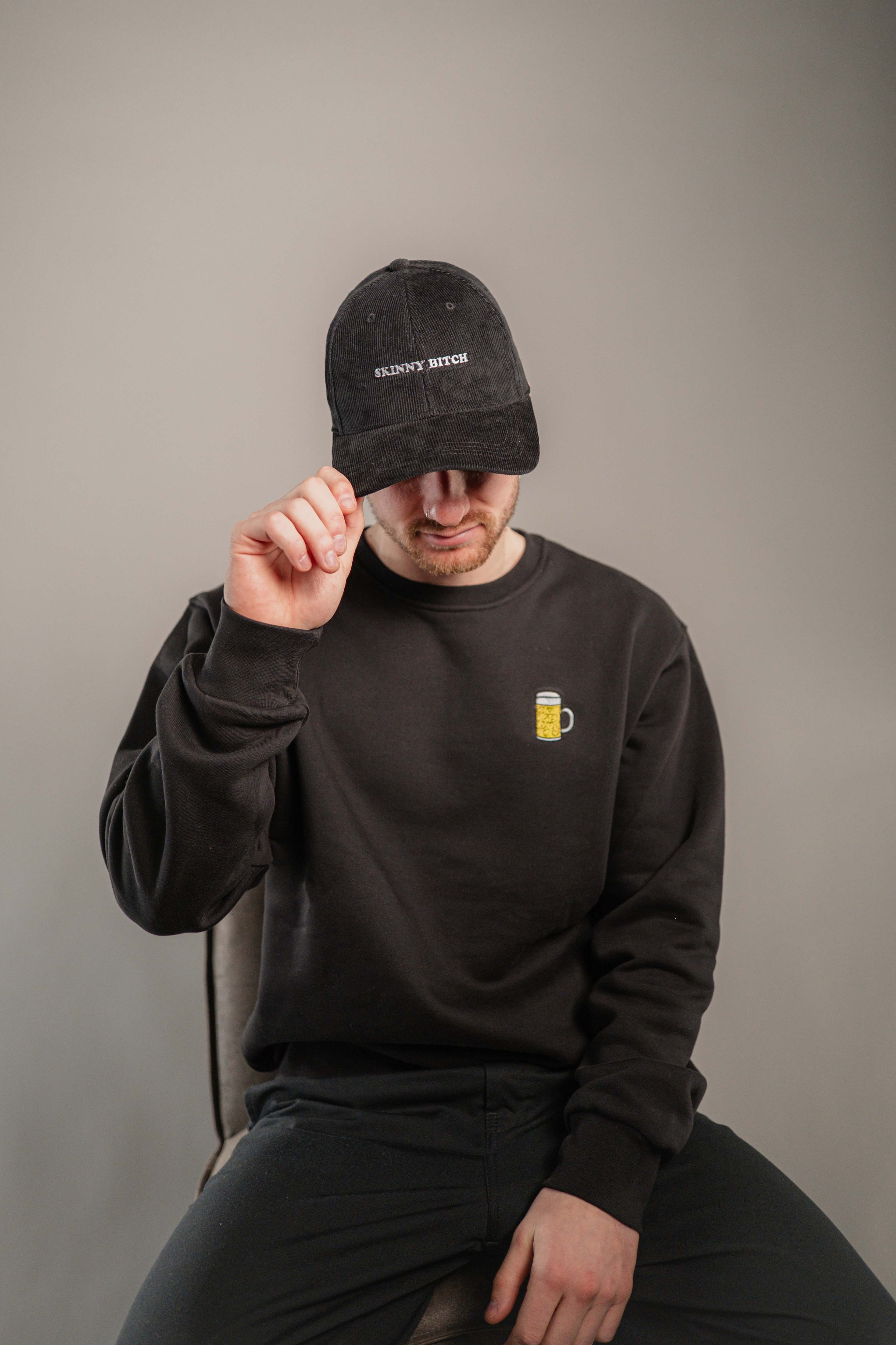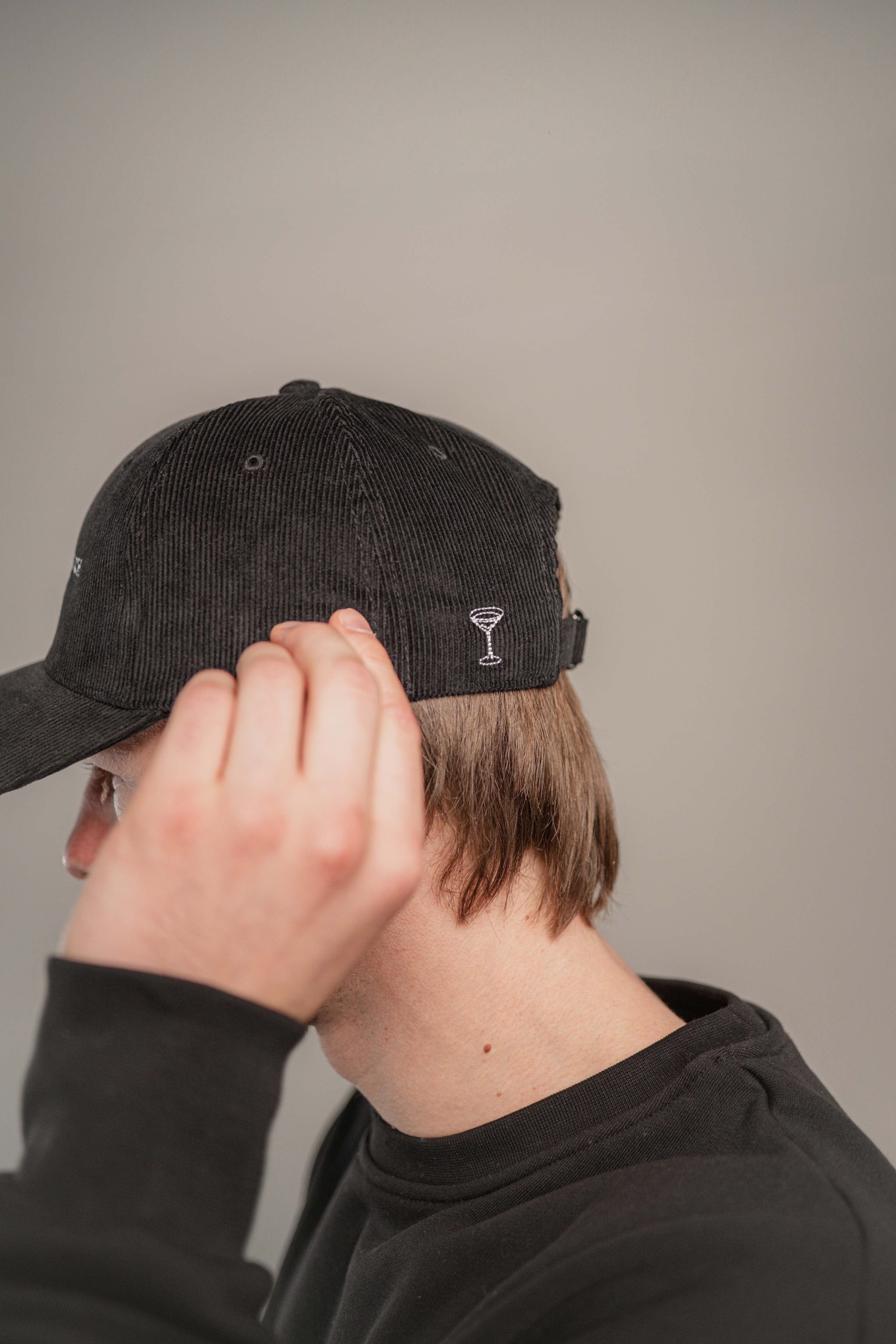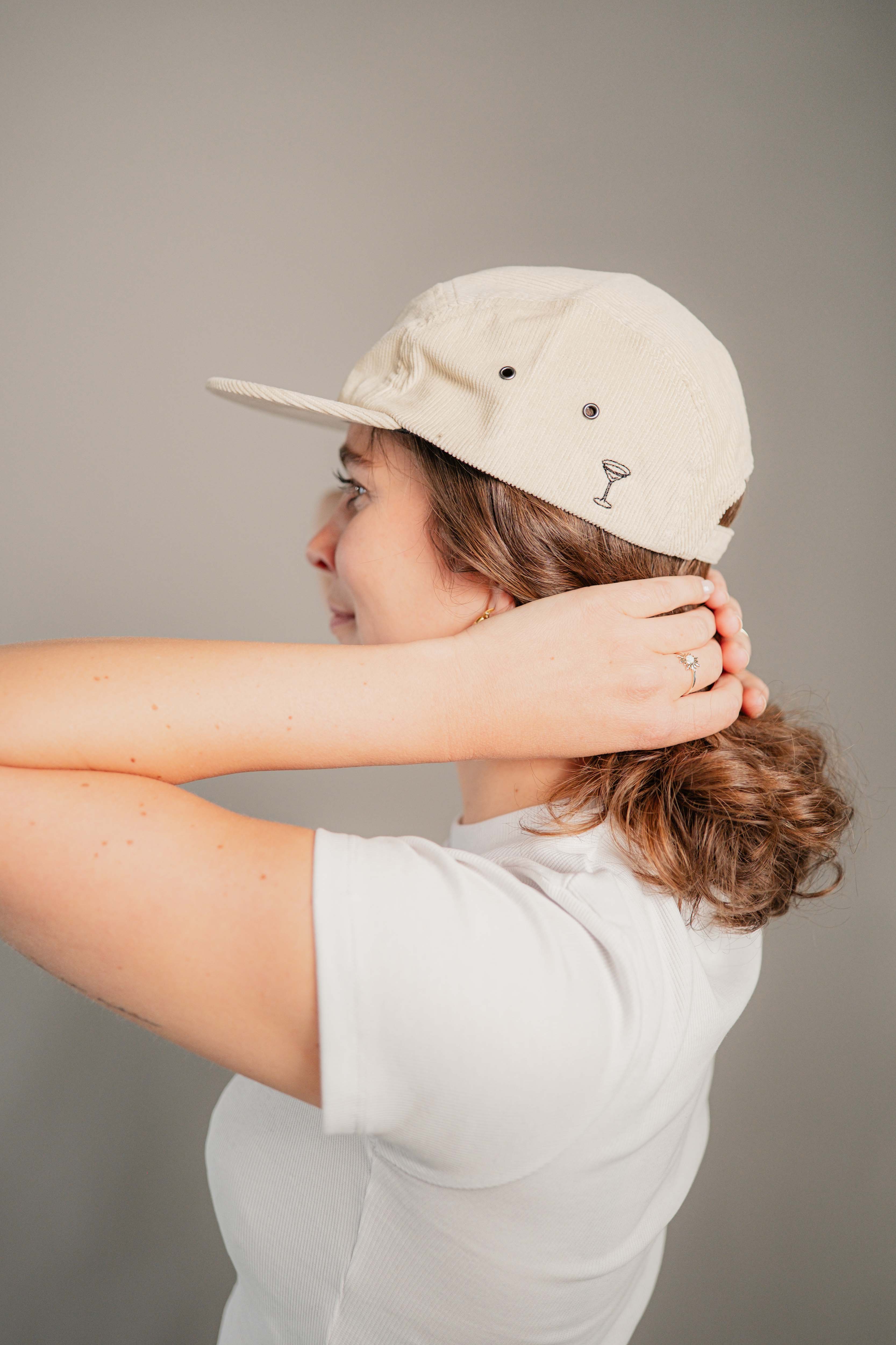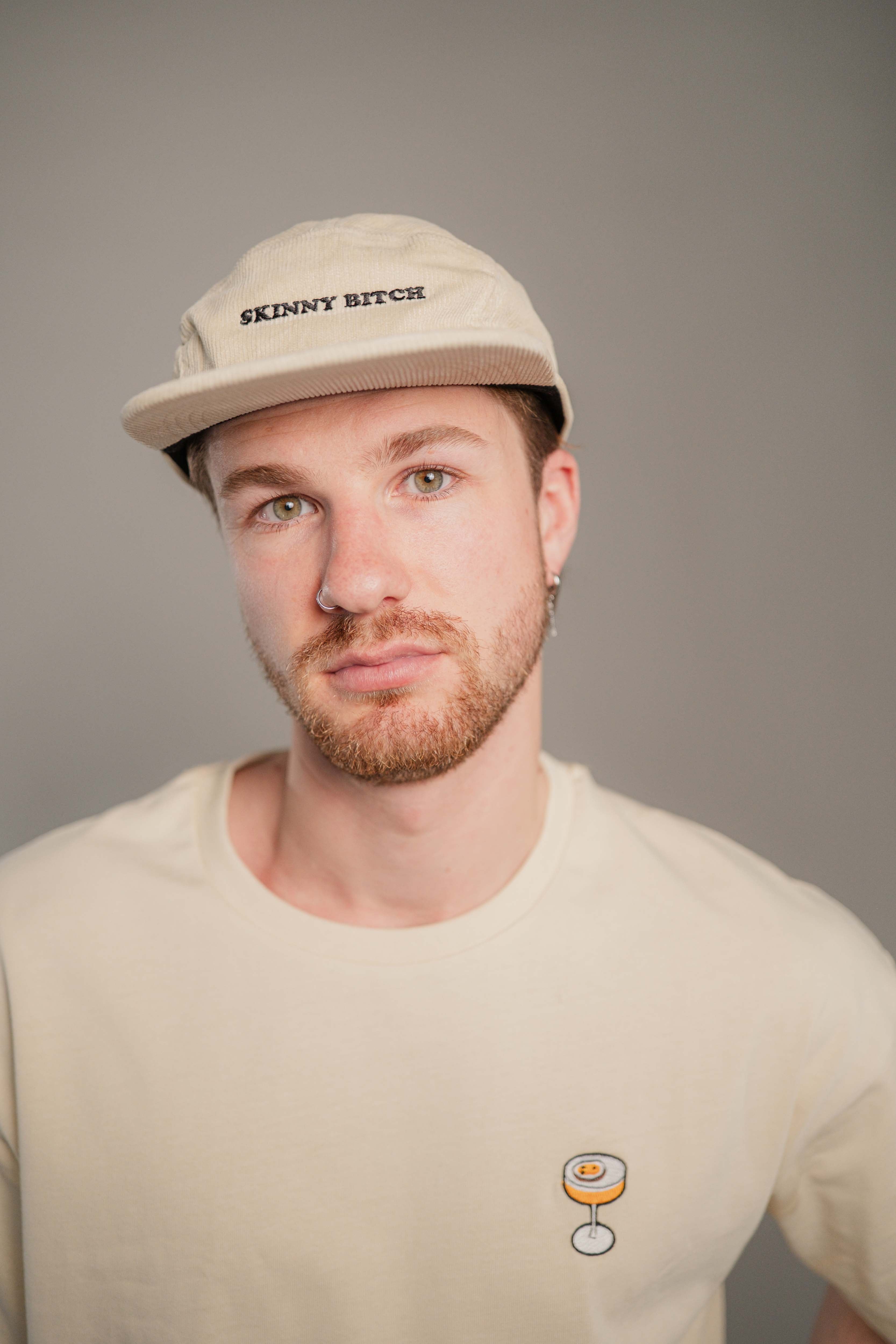 Super hochwertige Cord Cap aus 100% Bio Baumwolle mit gesticktem Skinny Bitch Schriftzug vorne und kleinem gesticktem Martini Glas seitlich