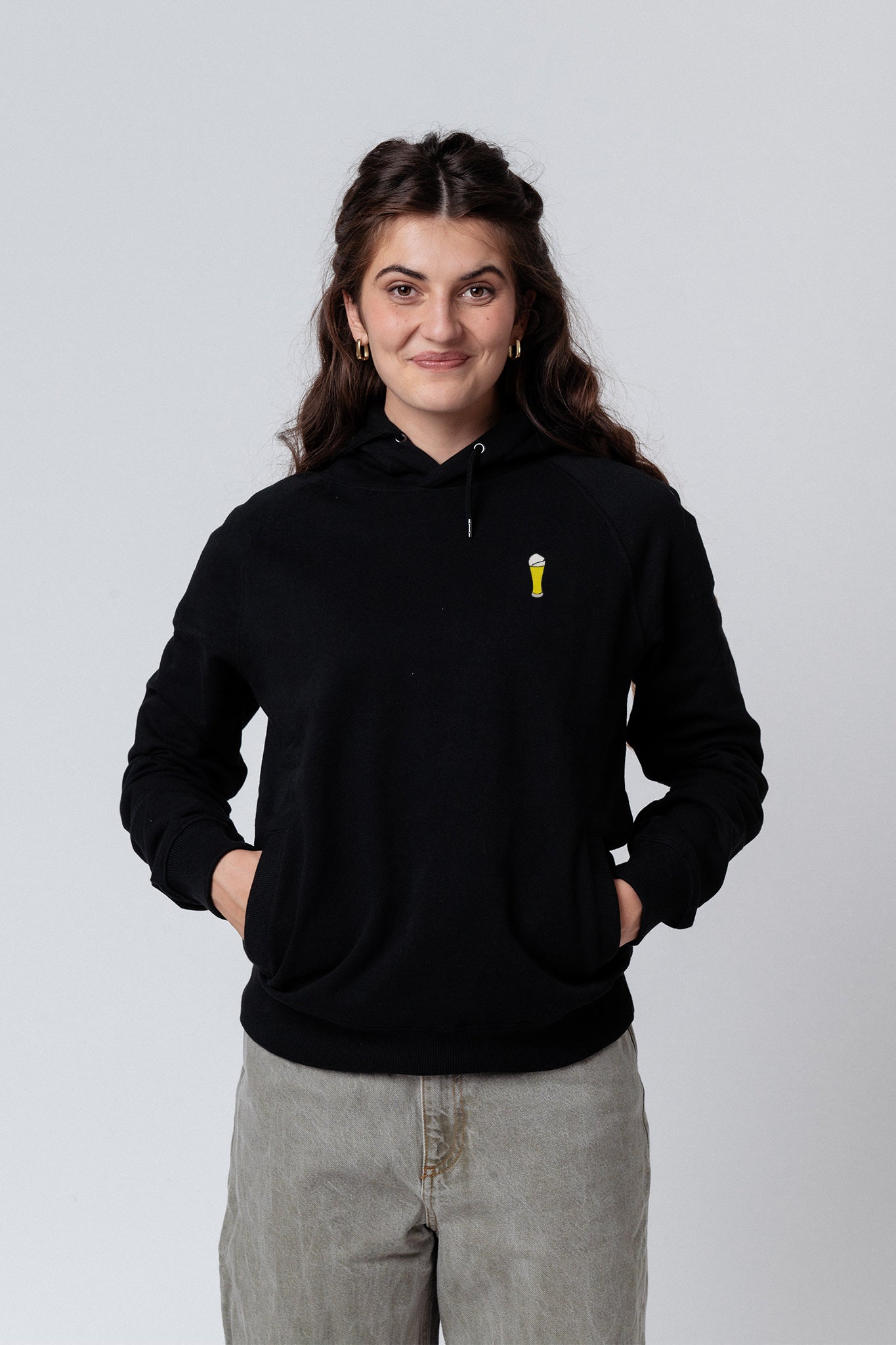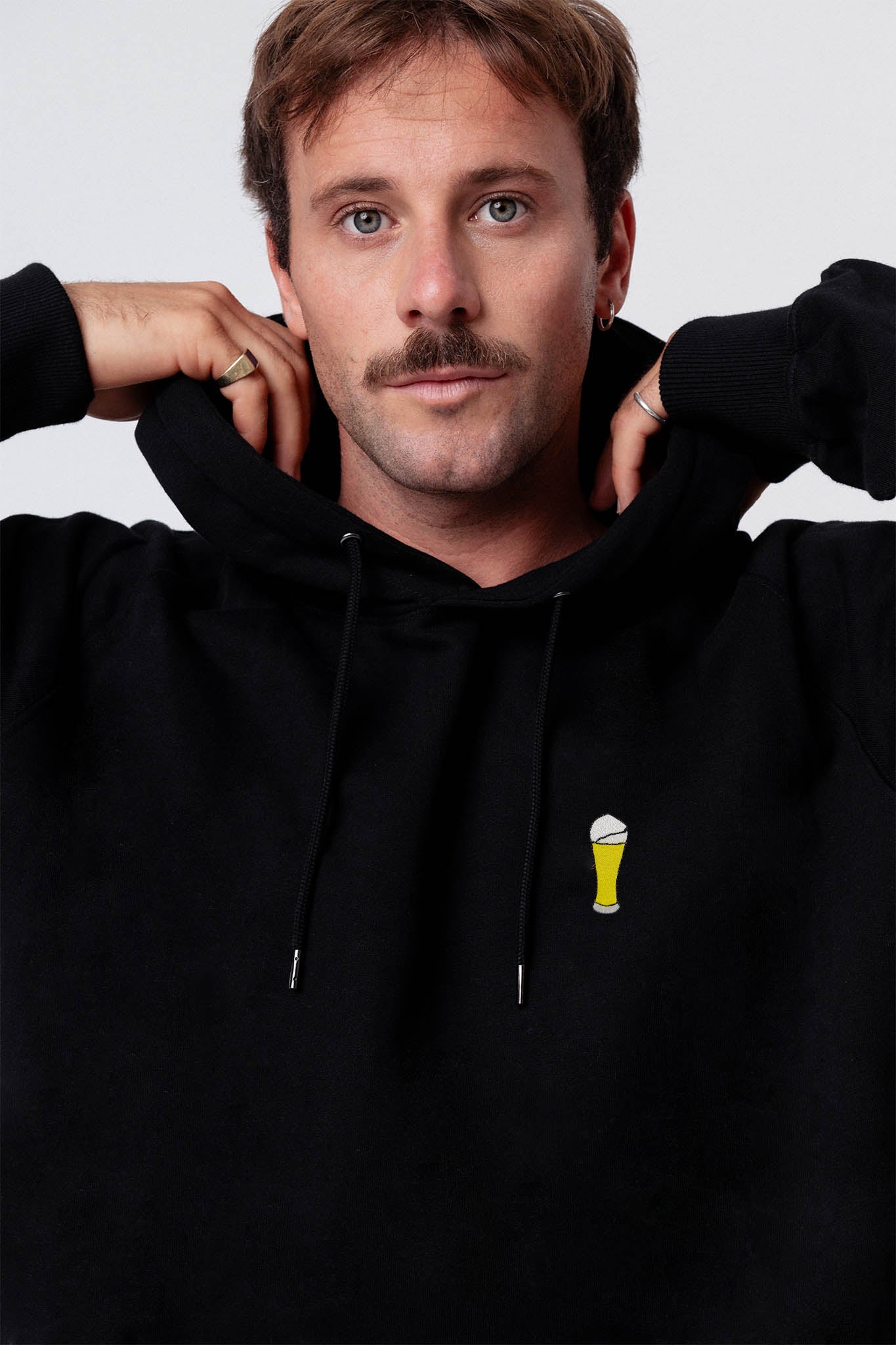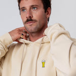 Super hochwertiger Bio Baumwoll Unisex Hoodie mit schwerem Stoff (350gsm) und gesticktem Weißbier Design